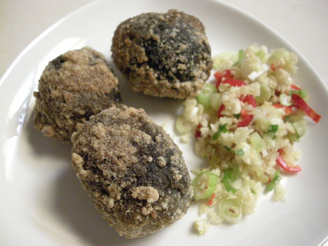 再灑上蒜末蔥末辣椒末胡椒鹽跟素蠔油