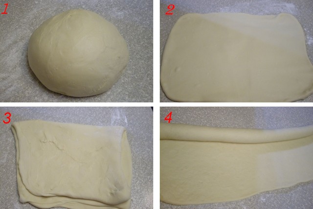 5.重覆桿開對折這個步驟至少12-15次以上,使得麵團變的非常細緻光滑